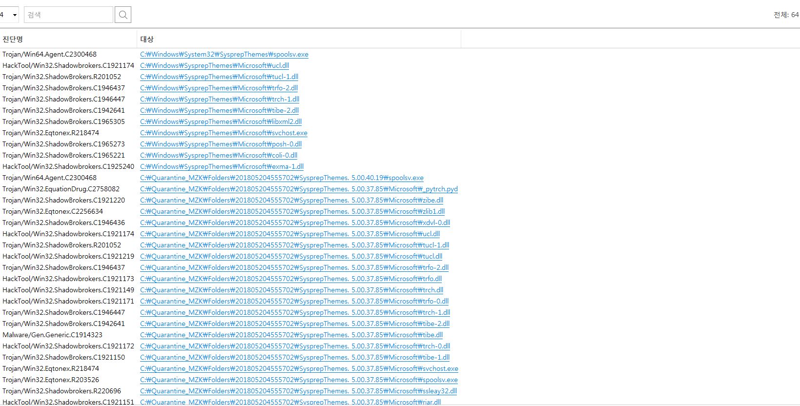 바이러스가 64개가 잡히네요. 너무 많지 않나요?